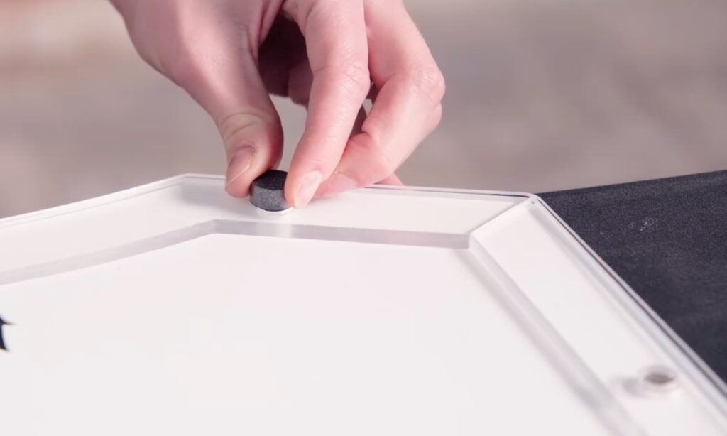 Cornice monofacciale la cui sagoma richiesta dal cliente ha un ingombro massimo di cm 50×70. con base in metallo nel colore a scelta e copertura in vetro sintetico, fissato con sistema brevettato T-memo composto da magneti e copri magneti in acciaio standard o nel colore della cornice, senza incisione o con personalizzazione